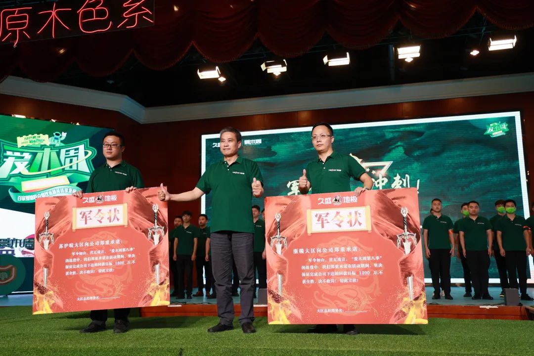 2021年10月9日,久盛地板愛木周啟動會“綠色星球,共住第8洲”在浙江南潯久盛地板工廠總部召開。參與此次活動的有久盛地板有限公司董事長張凱、總裁助理錢新民、營銷副總經(jīng)理孫守平、營銷副總經(jīng)理李彭濤、營銷副總經(jīng)理趙京濤、浙贛大區(qū)總經(jīng)理陳斌、蘇滬皖大區(qū)總經(jīng)理沈俊等高層領(lǐng)導(dǎo),以及浙蘇滬皖多個省市的數(shù)百位經(jīng)銷商蒞臨現(xiàn)場,更有百家媒體助陣發(fā)聲。