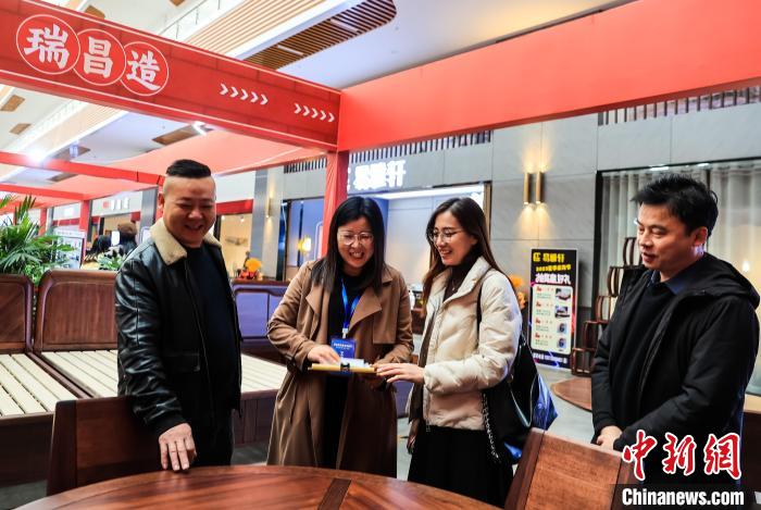 圖為2023瑞昌家具秋季采購節現場,顧客正在了解產品情況。 魏東升 攝