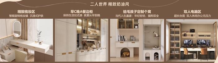 晨光奶咖——屬于二人世界的精致空間,親密無間中劃分出各自的愜意與自在,還少不了氛圍感與儀式感的充分營造。2023小紅書家居最火爆風(fēng)格“輕法奶油風(fēng)”,整體奶白主色調(diào),采用簡約輕法式門型,時(shí)光菱格背板點(diǎn)綴吸睛,柔和弧度轉(zhuǎn)角,搭配全屋同色系及柔軟家具,目之所及皆是溫柔。智能旋轉(zhuǎn)梳妝鏡,打造沉浸式護(hù)膚的精致梳妝區(qū);早C晚A餐邊柜,保持生活儀式感;專屬定制寵物窩,共享美好時(shí)光;雙人電腦區(qū)超長臺面,讓休閑辦公都自得其樂。